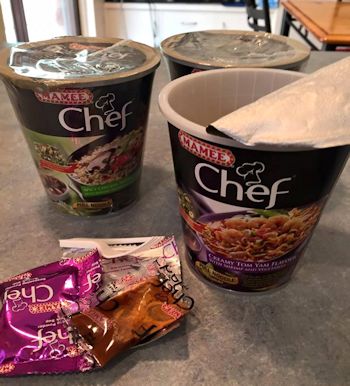 After having tried all three flavours I do lean towards the Tom Yam as the others do have a slightly spicy kick to them, but all were enjoyable and you can whip them up at the same time you make that midday coffee. All the additions are packaged separately so if you choose not to add the vegetable mixes on occasion you don’t have to without sacrificing on the Asian influenced taste.