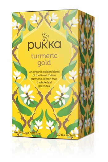 Both Pukka’s Turmeric Gold and Ginseng Matcha Green teas use specific forms of green tea that provide a gentle lift without that edgy, jittery feeling found in more heavily caffeinated beverages, such as coffee.